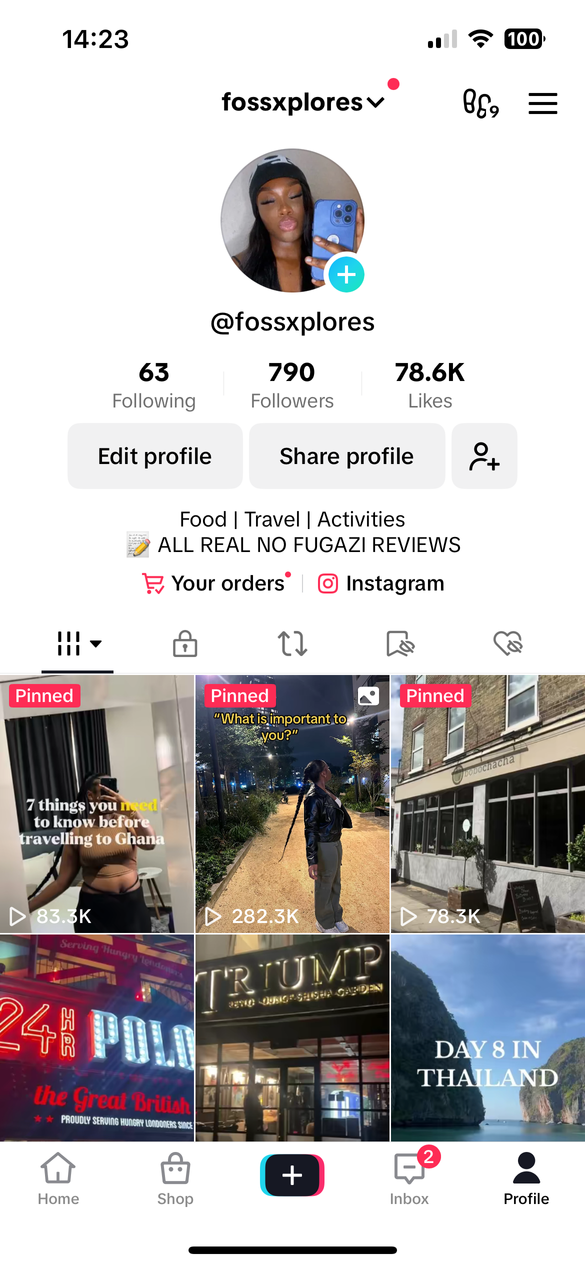 Grow Fossxplores’ TikTok audience by inspiring followers to explore new destinations, try unique foods, and embrace solo adventures.